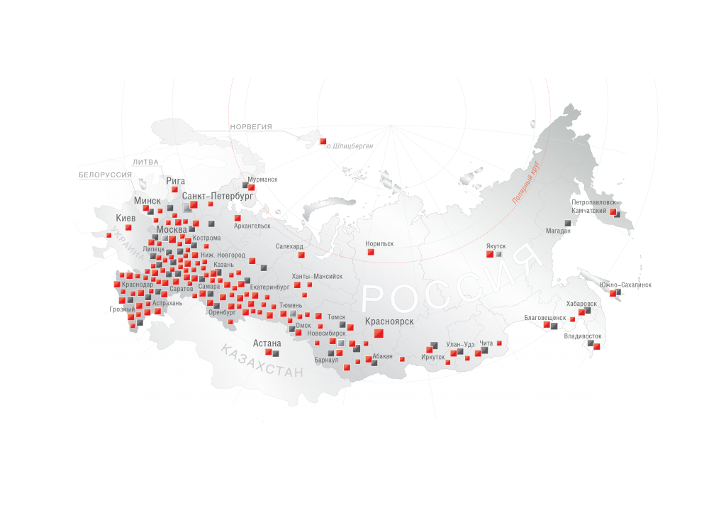 География объектов с применением НФС КРАСПАН с 1999 по 2026 гг. насчитывает 210 городов России и зарубежья.